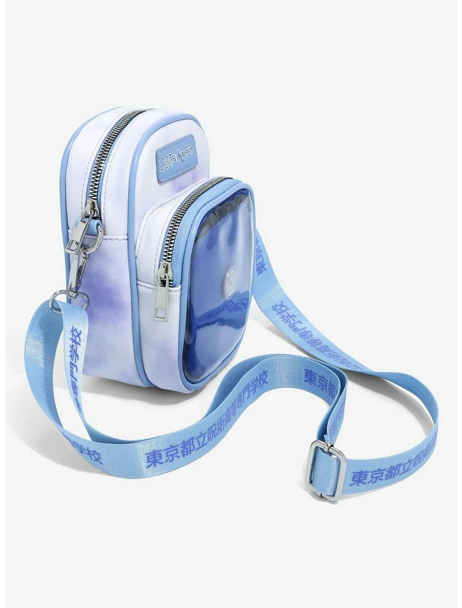 Cast away any curses on the go with your favorite first year Jujutsu Sorcerers and this stylish Jujutsu Kaisen crossbody bag! Featuring a clear front pocket to show the inner background graphic of Megumi, Yuji, and Nobara in adorable chibi forms, this crossbody also comes with a pin backing pocket insert so you can show off your anime pin collection. Also features a die-cut brand badge, silver-toned hardware, an adjustable “Tokyo Metropolitan Curse Technical College” Japanese kanji lettering shoulder strap, and a Tokyo Jujutsu High School logo enamel pin to help get your display started!